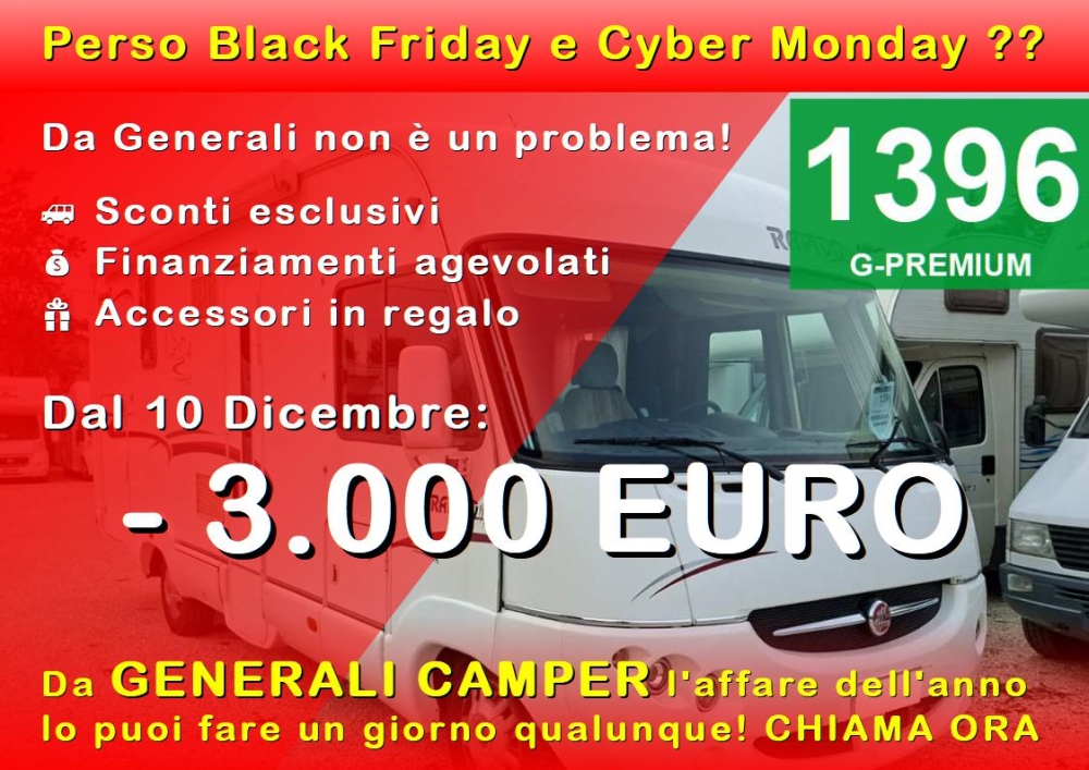 CLIMA CABINA - CLIMA CELLULA - DOPPIO SERBATOIO ACQUE CHIARE - TENDALINO - PORTABICI - RETROCAMERA - ANTENNA TV - FOTOVOLTAICO - FRIGO ALTO 150L - DOPPIO PAVIMENTO CON GAVONE PASSANTE - GARAGE
