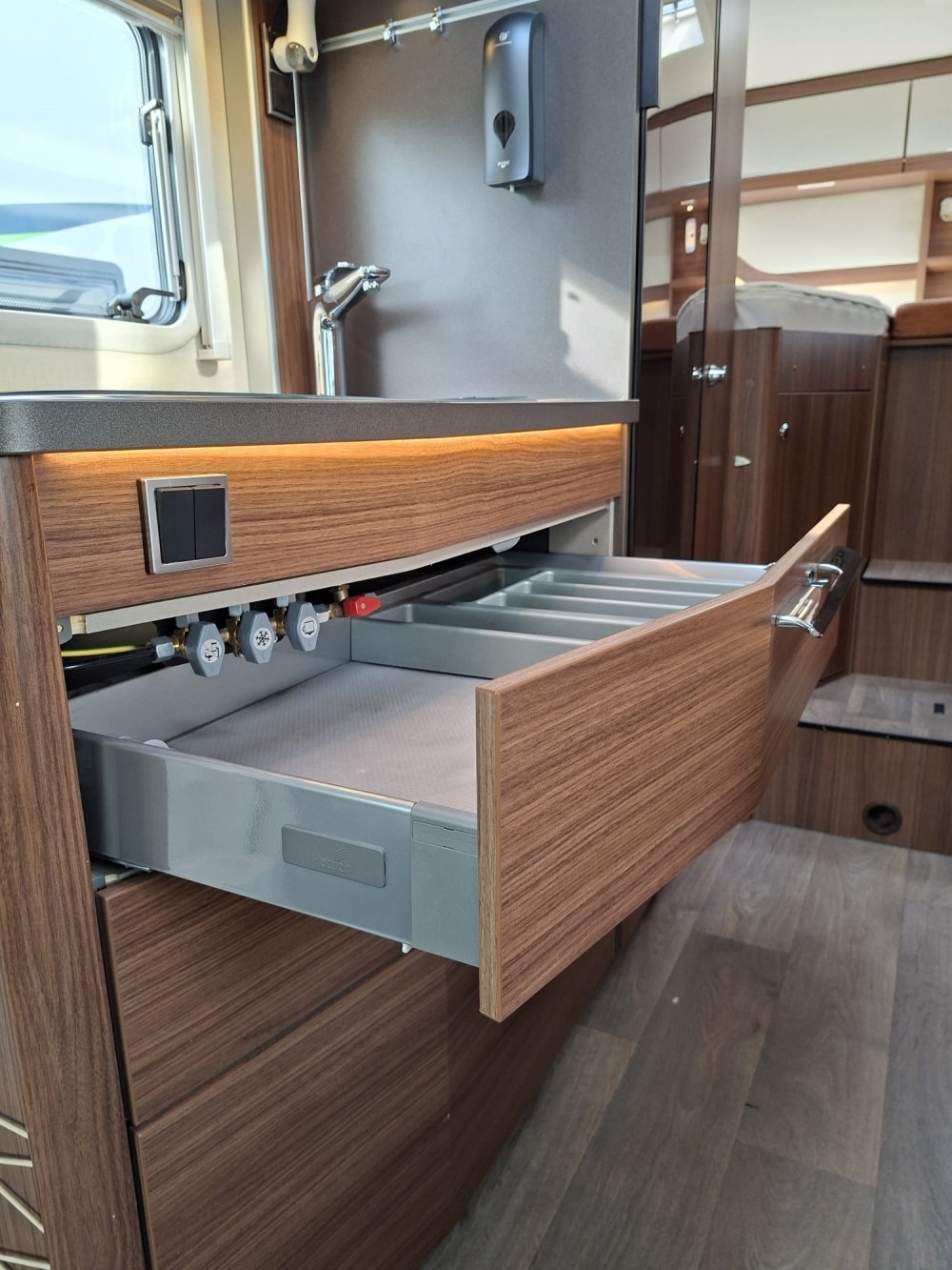 ADBLUE - TENDALINO - AUTORADIO 2DIN - CLIMA CABINA - CONDIZIONATORE VIESA - CRUISE CONTROL - FRIGORIFERO TRIVALENTE 150L AUTOMATICO - INVERTER - PANNELLO FOTOVOLTAICO TRAZIONE POSTERIORE SU RUOTA SINGOLA - SISTEMA EFOY - CERCHI IN LEGA DA 16"